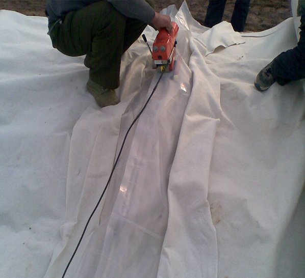 复合土工膜(复合防渗膜)分为一布一膜和两布一膜,宽幅4-6m,重量为200—1500g/平方米,抗拉、抗撕裂、顶破等物理力学性能指标高,产品具有强度高,延伸性能较好,变形模量大,耐酸碱、抗腐蚀,耐老化,防渗性能好等特点。能满足水利、市政、建筑、交通,地铁、隧道、工程建设中的防渗,隔离,补强,防裂加固等土木工程需要。由于其选用高分子材料且生产工艺中添加了防老化剂,故可在非常规温度环境中使用。常用于堤坝、排水沟渠的防渗处理,以及废料场的防污处理。