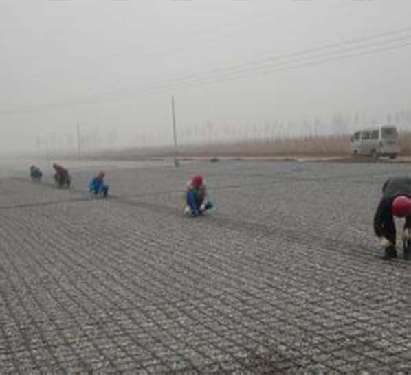7、桥台地基一般很容易向下沉陷,出现跳车现象,在桥台地基下铺设土工格栅,可提高承载力,稳固桥台。
