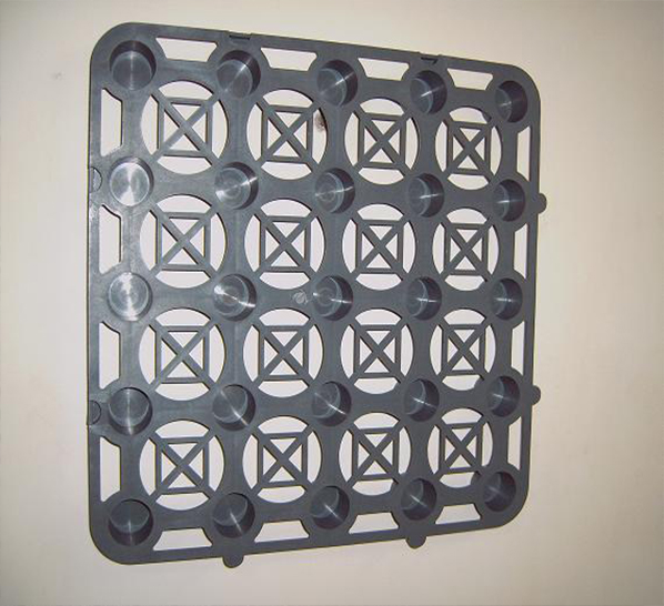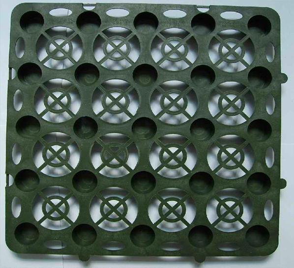 该种板材自身就具有蓄水、排水两种综合功能,板材具有空间刚度极高的特点,抗压性明显优于同类产品(可以通过现场试验检验),能够承受400Kpa以上的高抗压负荷,同时可以承受在种植顶板回填土过程中机械碾压的极端负荷情况。