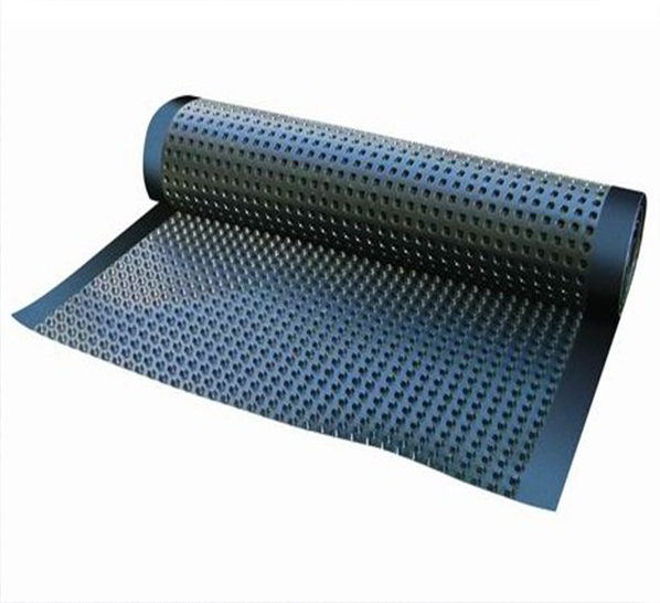 排水板是由聚苯乙烯(HIPS)或者是聚乙烯(HDPE)塑胶底板经过冲压制成圆锥突台或者加劲肋的凸点(或中空圆柱形多孔)而成,幅宽有3米,长度有10米或者是15米。