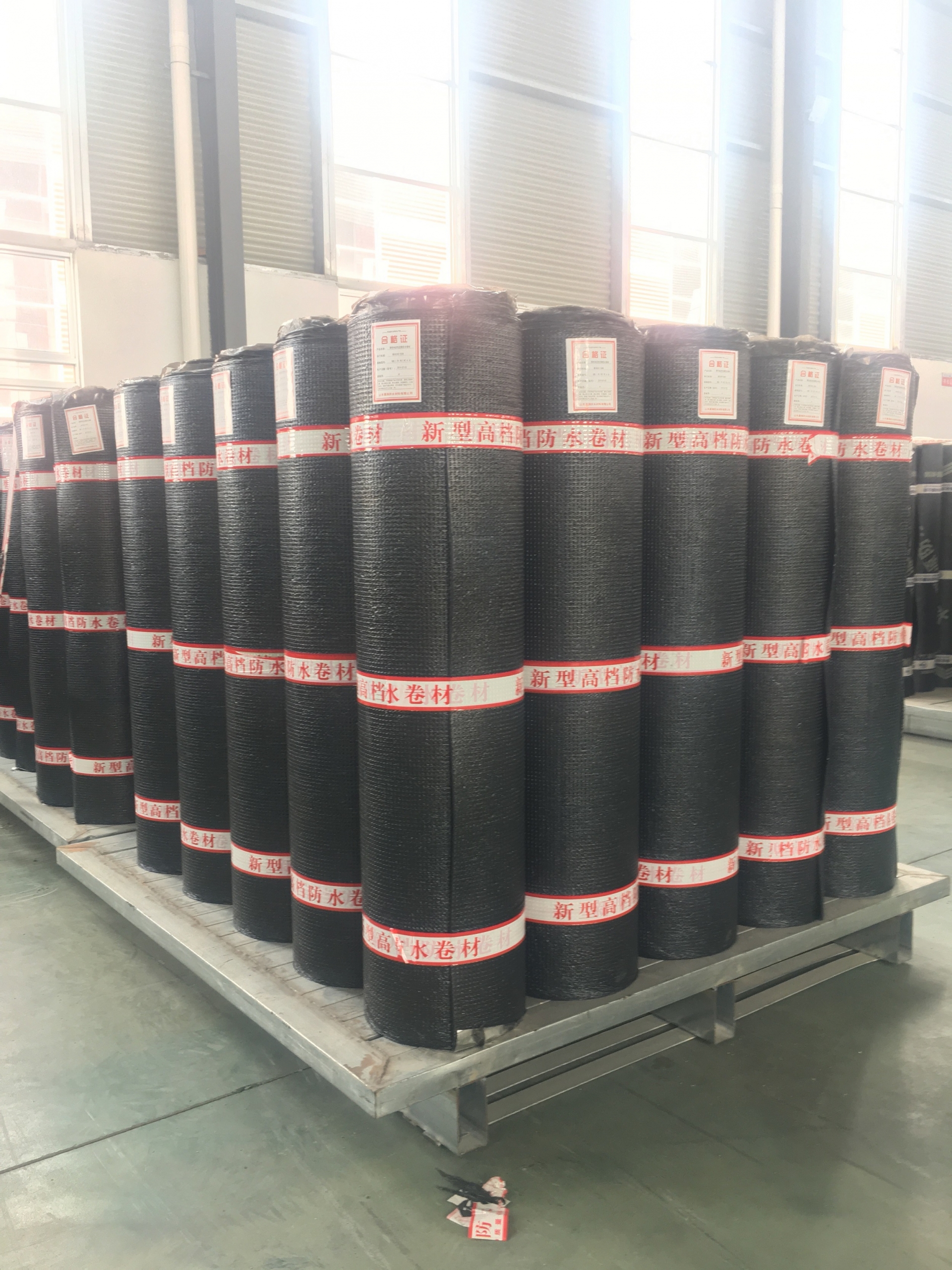SBS防水卷材自粘聚合物改性沥青防水卷材是以SBS等合成橡胶、道路沥青及增粘剂为基料,以聚酯膜(PET)、聚乙烯膜(PE)、铝箔或涂硅隔离膜为上表面材料,下表面覆以涂硅隔离膜为防粘层而制成的自粘聚合物改性沥青无胎基防水卷材。
